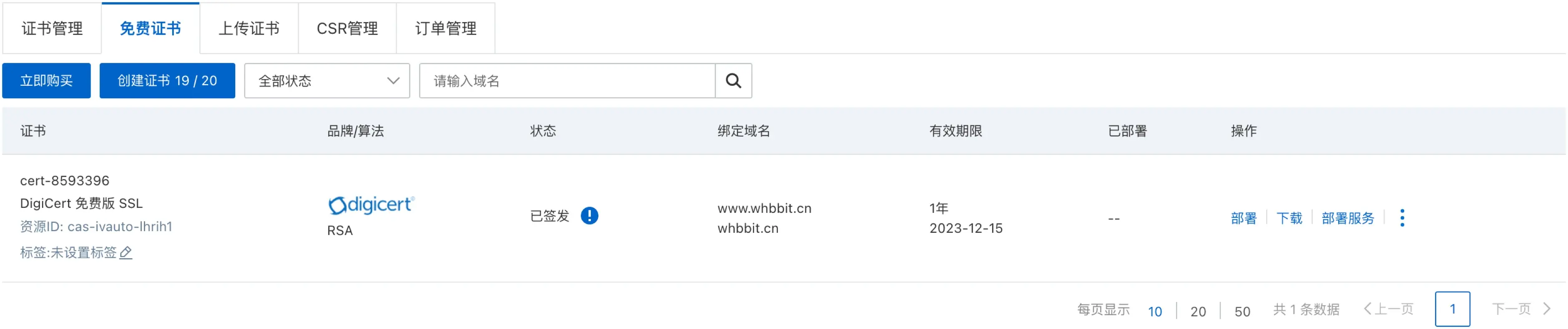 找到对应站点配置项,我这里是将 www.whbbit.cn 和 whbbit.cn 域名跳转至 https 服务