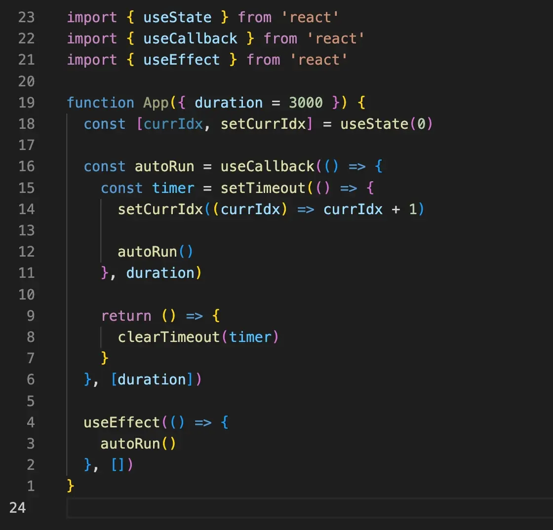 轮播图组建需要自动轮播,我想到了使用 setTimeout 来解决 setInterval 可能越来越快的问题。心里想着:这我还不轻松拿下?一番奋战后于是就有了以下代码