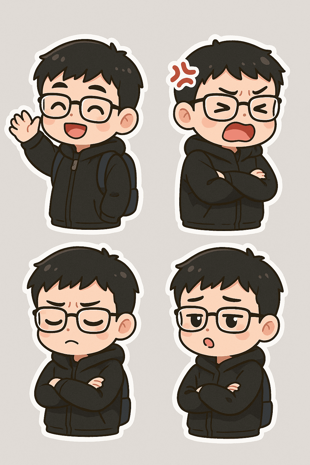 提示词:Turn me into a chibi sticker set, every sticker should not cover the other stickers.