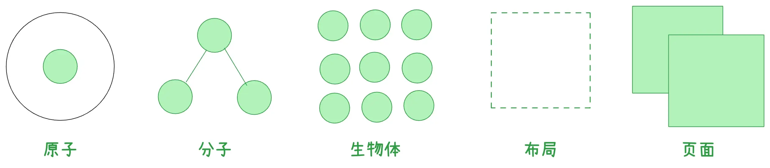- 分子 Molecules:形成简单组件的原子组(例如,搜索栏)。